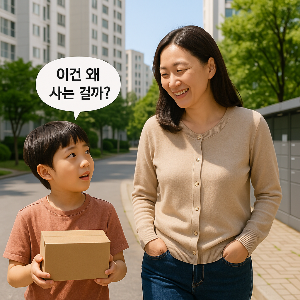 우리는 아이에게 모든 걸 사줄 수는 없지만, 가치 있는 선택을 할 수 있는 기준을 가르칠 수 있다. 택배함 앞, 사소한 순간 속에서도 아이는 배우고 있고, 부모는 가르칠 수 있다. 단 한 번의 이건 왜 샀을까, 지금 꼭 필요한 걸까, 사지 않아도 괜찮을까라는 질문이, 아이의 평생 소비 습관을 좌우할 수 있는 씨앗이 된다.